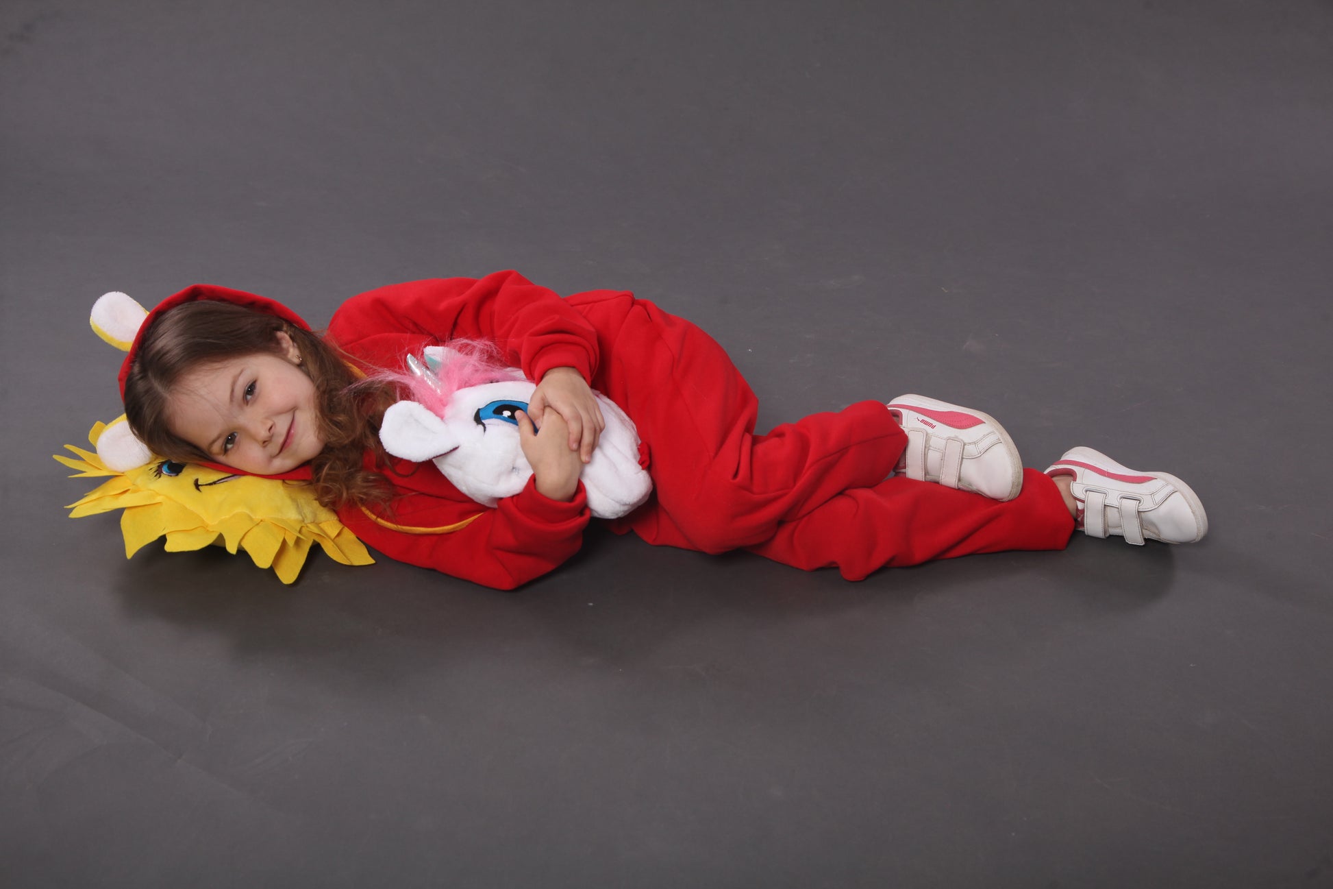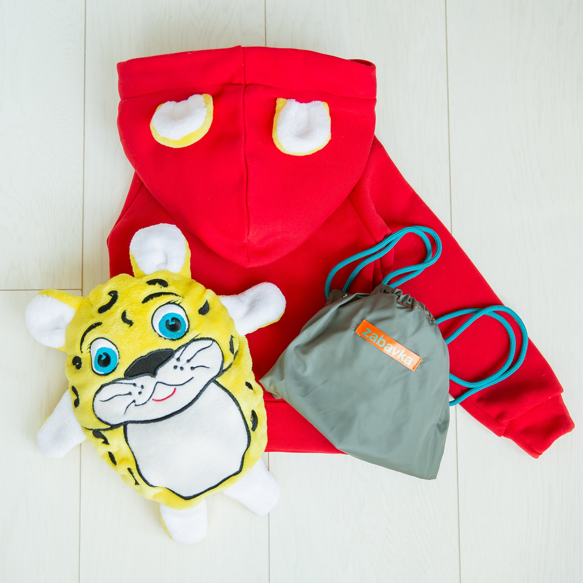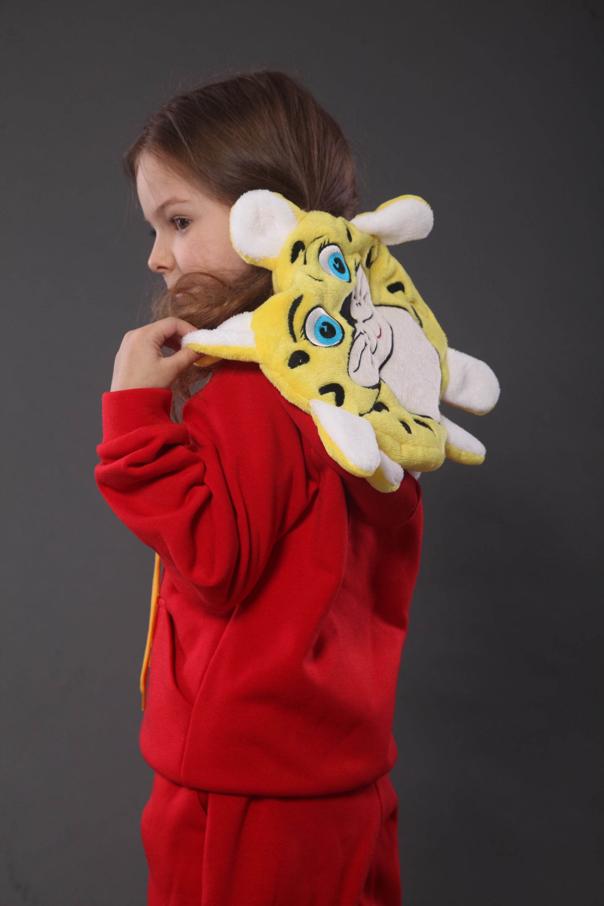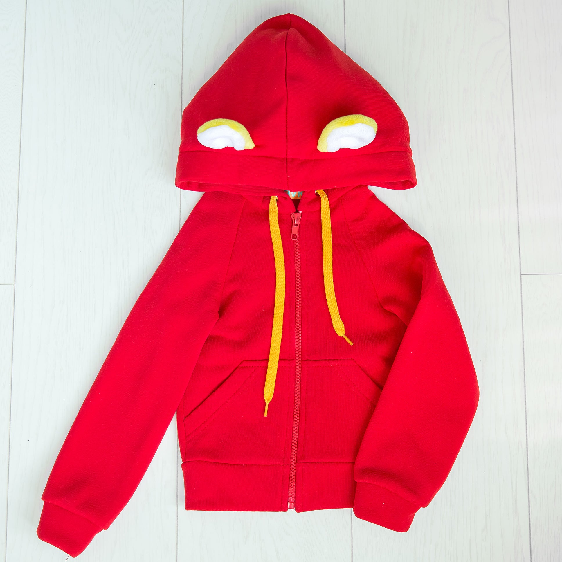 Mit unserem roten Löwen-Hoodie haben Kinder Pullover, Kissen und Kuscheltier in einem!
