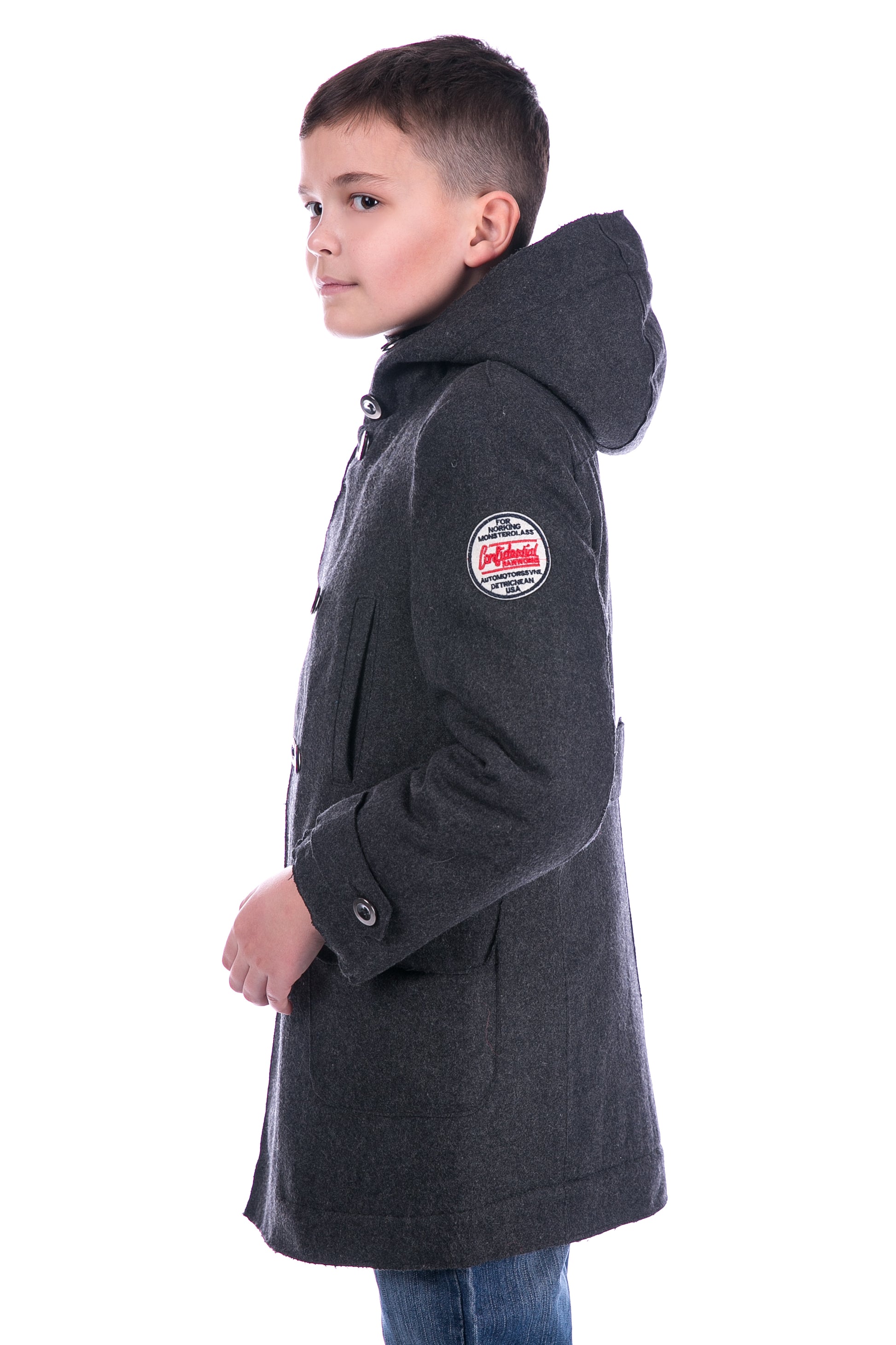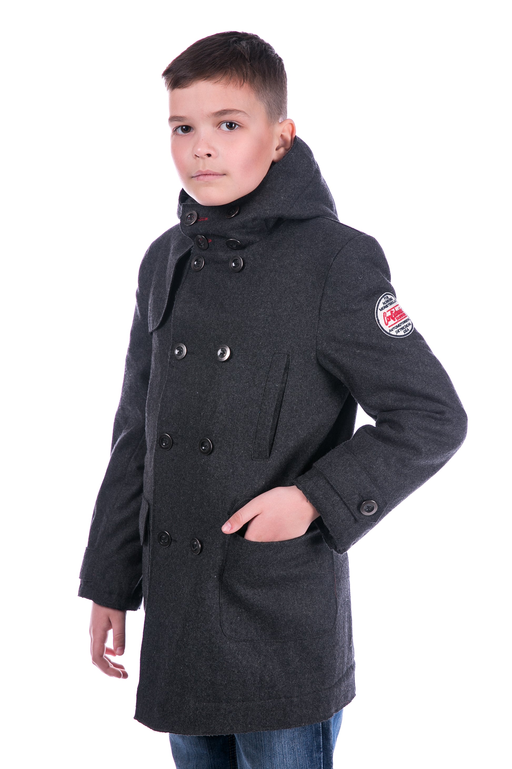 Пальто шерстяное для мальчиков, съёмный капюшон