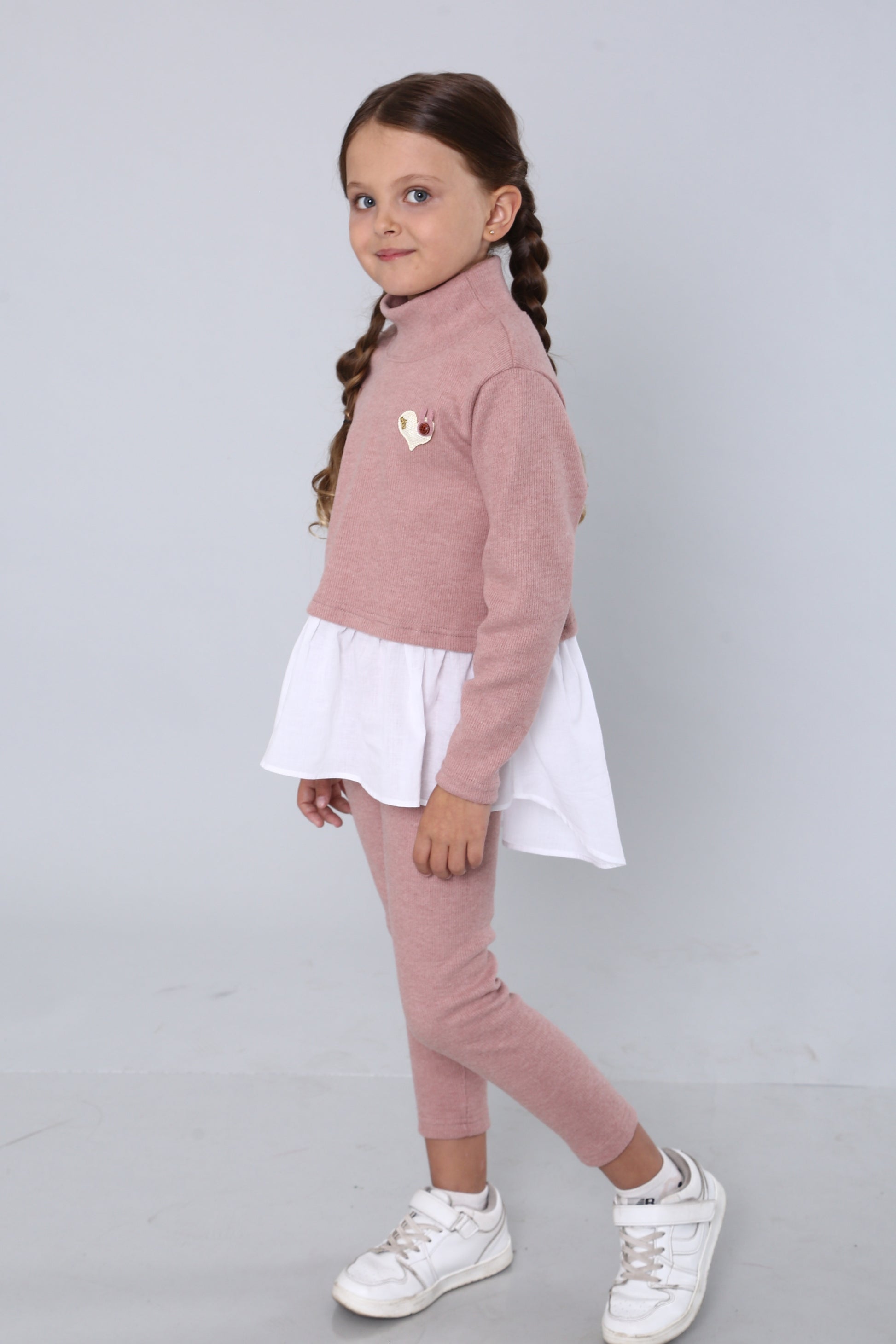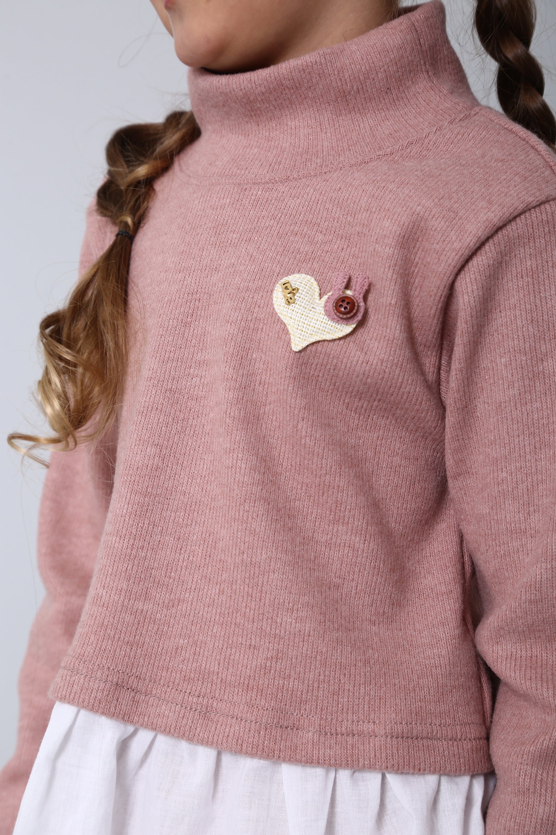 Mädchen Strick-Set mit Baumwoll-Basque & Herz – altrosa